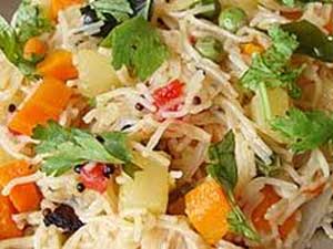 சேமியா - 1 கப் பெரிய வெங்காயம் - 1 (நறுக்கியது) தக்காளி - 1 (நறுக்கியது) பச்சை மிளகாய் - 3 (நறுக்கியது) இஞ்சி பூண்டு விழுது - 2 டீஸ்பூன் உருளைக்கிழங்கு - 1 (நறுக்கியது) கேரட் - 1 (நறுக்கியது) பீன்ஸ் - 4 (நறுக்கியது) கரம் மசாலா தூள் - 1/2 டீஸ்பூன் மஞ்சள் தூள் - 1/2 டீஸ்பூன் பட்டை - 1 கிராம்பு - 5 பிரியாணி இலை - 2 கறிவேப்பிலை - 1 கொத்து கொத்தமல்லி - சிறிது (நறுக்கியது) உப்பு - தேவையான அளவு எண்ணெய் - தேவையான அளவு ADVERTISEMENT